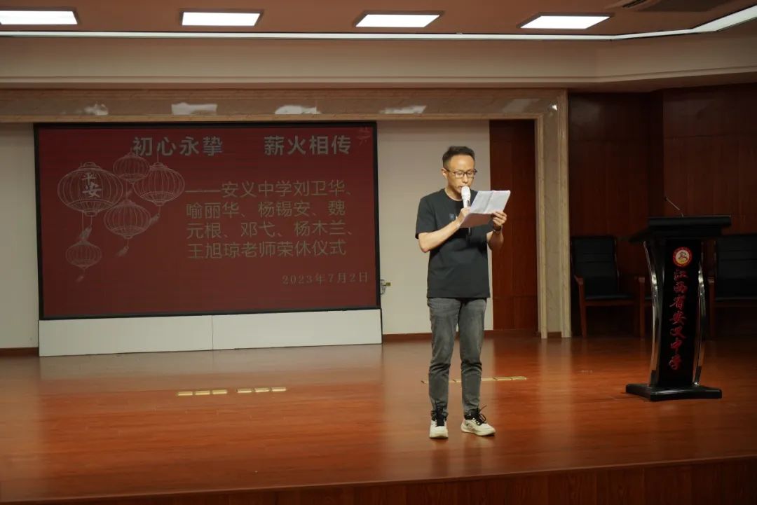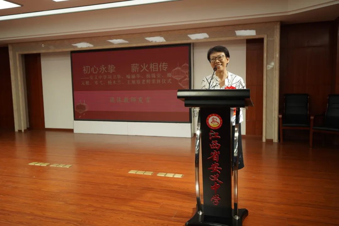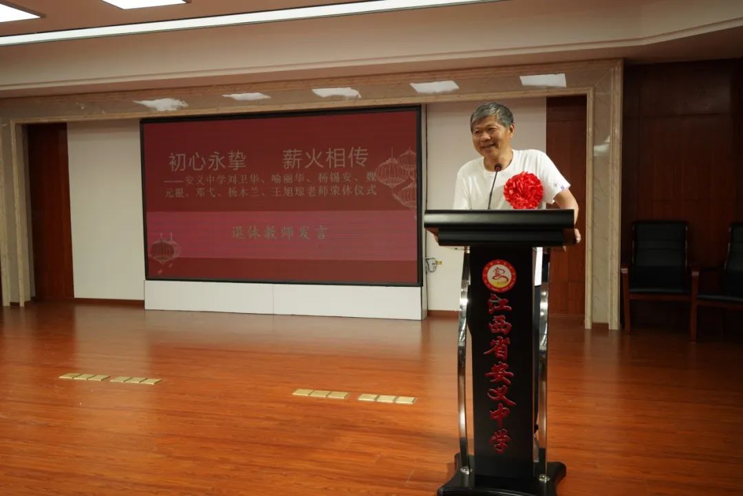 在随后简短的发言中,骆校长表示希望年轻教师以退休老教师为榜样,继续发扬吃苦耐劳、甘于奉献、努力钻研的精神和劲头,让安中的优良传统薪尽火传。