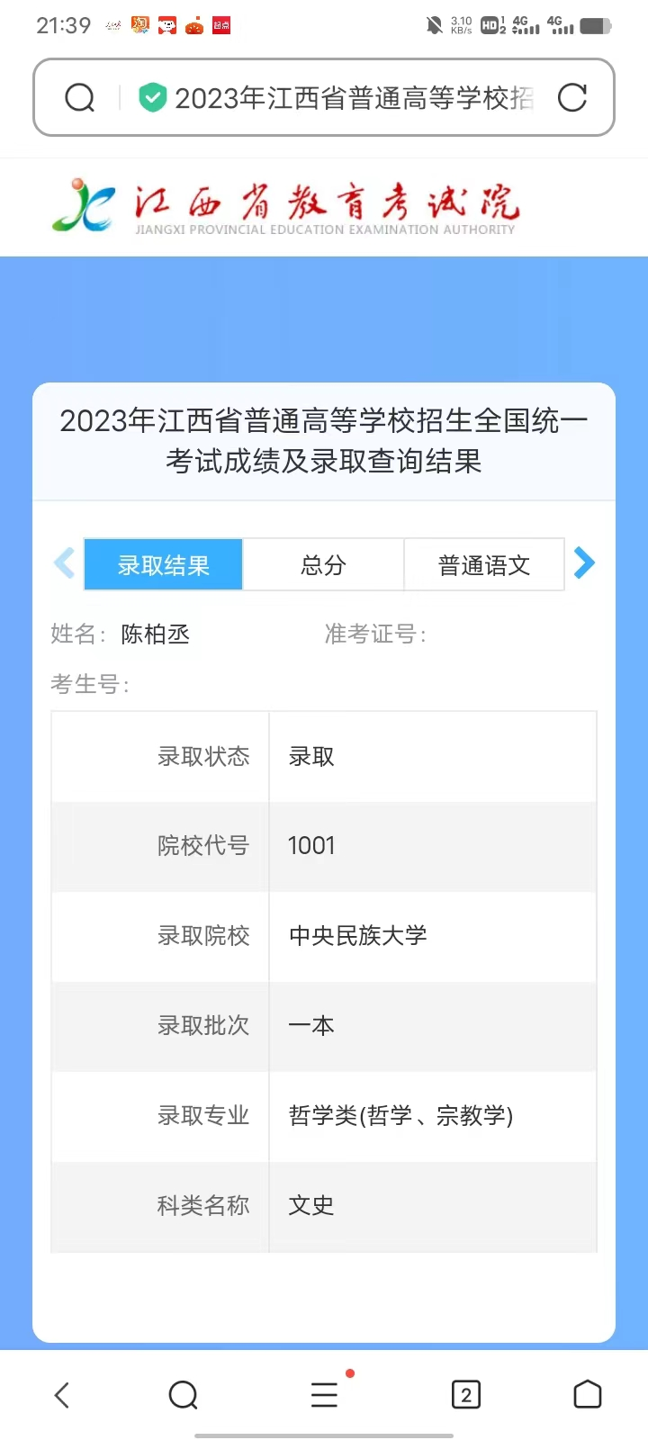 所录取院校照片