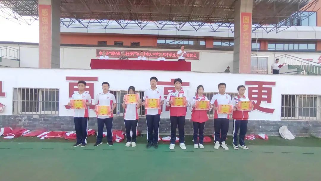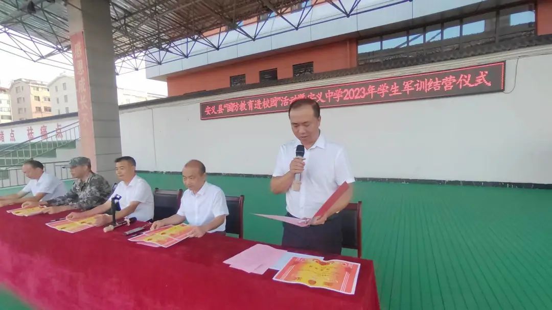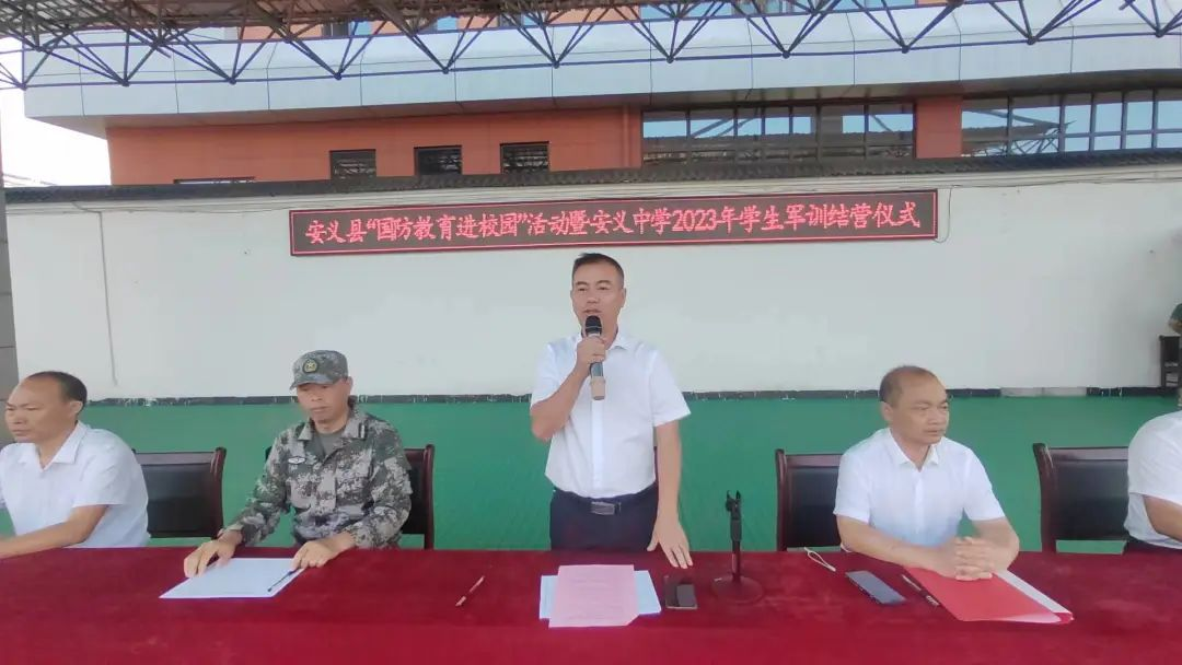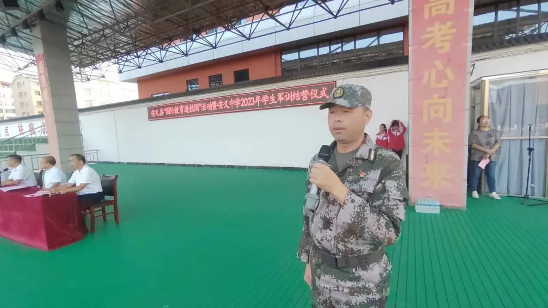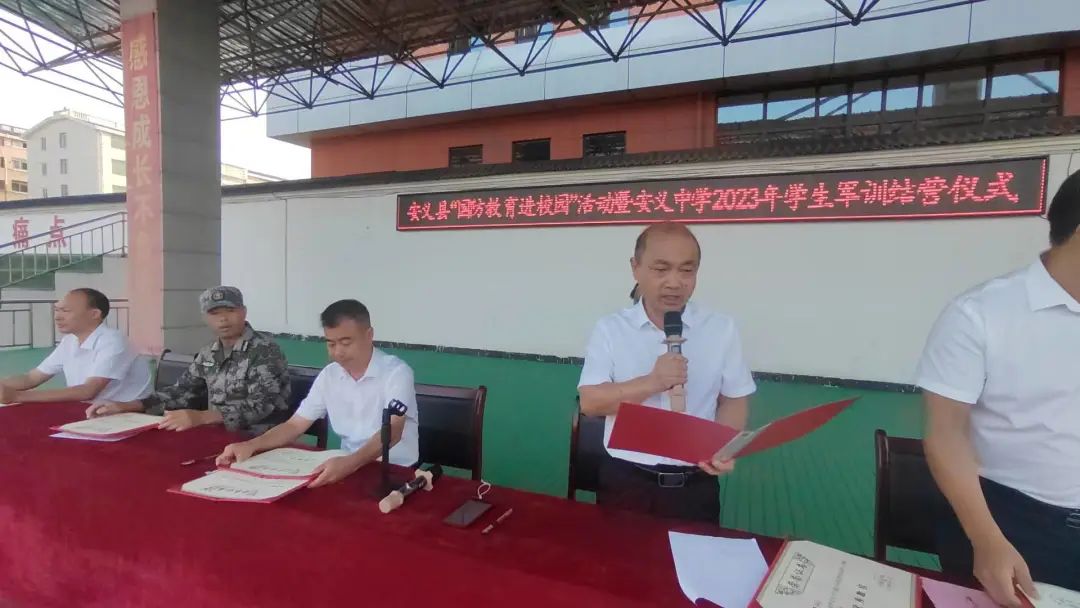 9月21日-9月27日,安义县‘国防教育进校园‘活动暨安义中学2023年高二学生军训在安义中学顺利开展。出席本次活动的领导有安义中学党总支书记、校长骆巧弟同志,安义县人武部作训科参谋张良同志,安义中学副校长梁志能同志,办公室主任邓名波同志,政教处主任钟文龙同志,高二年级主任彭贤仕同志,全校1350名高二学生以及全体高二班主任一同参与了本次活动。