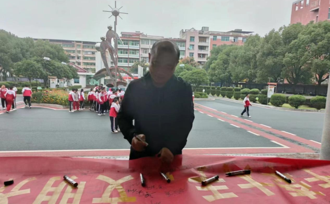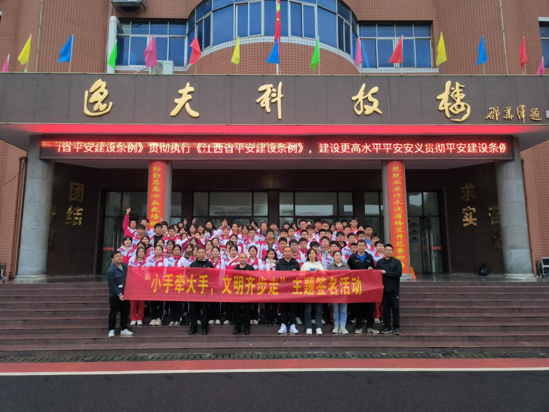 安义中学开展“大手牵小手,文明齐步走”主题签名活动