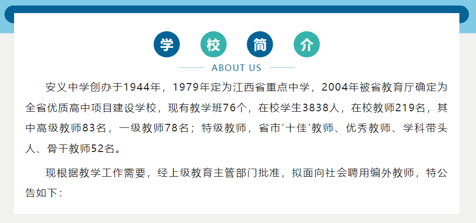 江西省安义中学2023年面向社会聘用编外教师公告