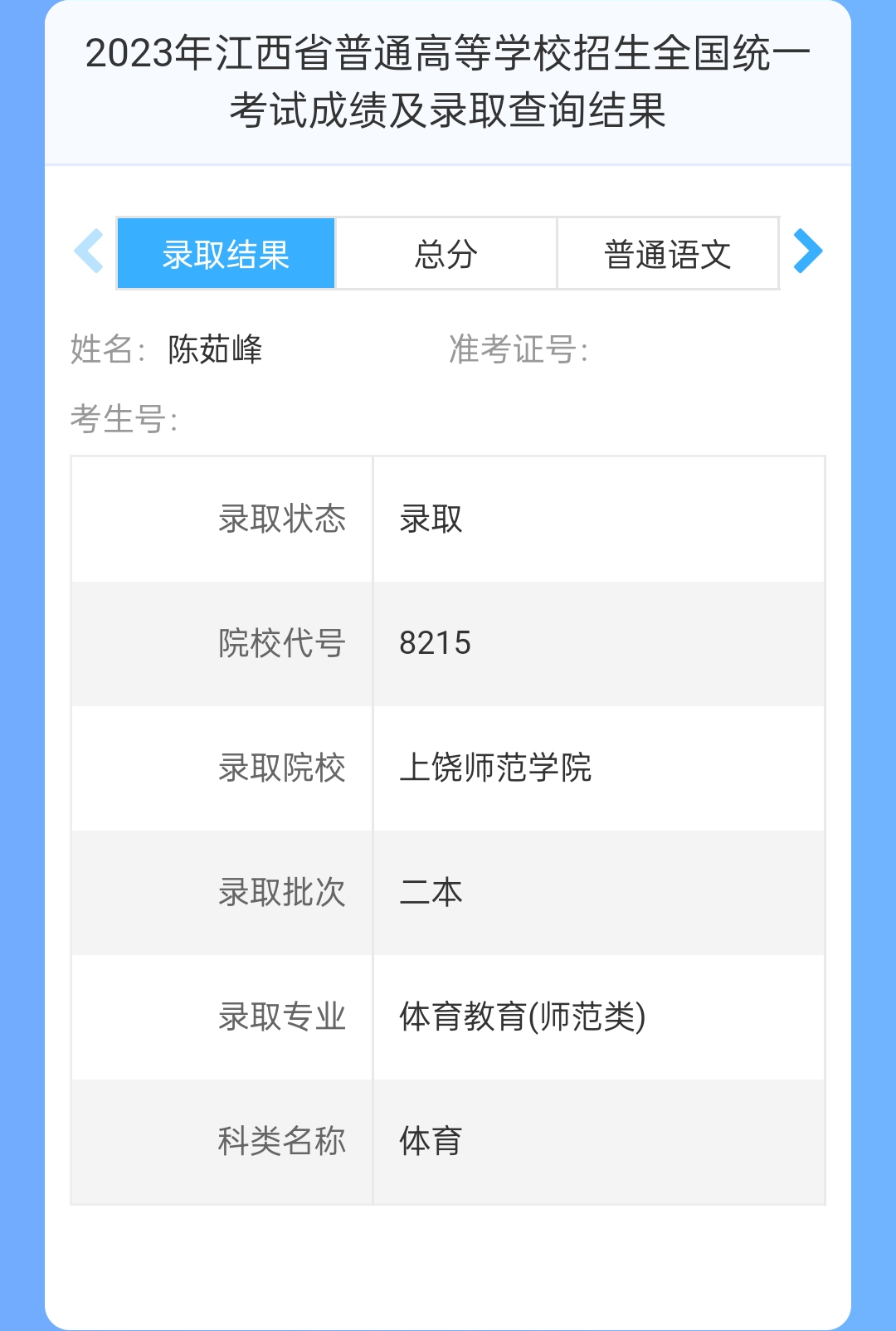 录取院校介绍: 上饶师范学院(Shangrao Normal University),位于江西省上饶市,是全日制普通本科学校,由江西省人民政府与上饶市人民政府共建。学校前身是1958年建立的上饶师专,1959年更名为赣东北大学,文革期间停办。1977年复校,2000年3月经教育部、江西省人民政府批准升格为上饶师范学院。2005年11月,顺利通过了教育部本科教学工作水平评估。截至2022年12月,学校校园占地面积1594亩,校舍建筑总面积59.38万平方米,馆藏纸质图书174万册,电子图书182万册,教学科研仪器总值2.1亿元;设有15个二级学院,其中,数字技术应用产业学院1个;有教职工1307人,在校生数16269人。