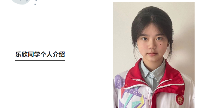 乐欣同学作为中国共产主义青年团中的一员,品学兼优,乐观开朗,自信阳光,热爱集体,尊重师长,孝敬父母,热爱生活,她以最热情、最饱满的状态认真对待她生活中的每一件事。
