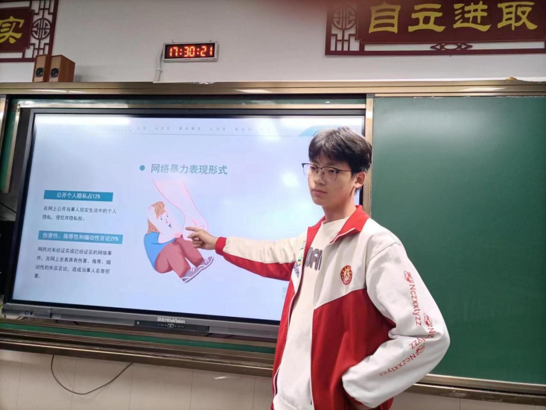 网络是现代社会的重要组成部分,它为人们提供了便利的信息交流和广阔的知识空间。然而,我们不能忽视的是,网络也存在着一些问题,如网络犯罪、网络谣言、网络暴力、恶搞视频等等。这些负能量问题的存在,不仅影响了网络的安全和稳定,也给我们的工作、生活带来了很多负面影响。作为网络重要用户群体的中学生,安中学子经常使用网络进行学习、获取知识、交流和娱乐。为引导同学们正确利用网络,做文明的网络使用者,健康使用网络,安义中学近期利用班会课召开了《网络不是法外之地》的主题班会。