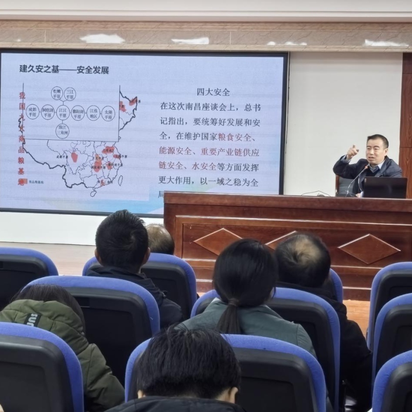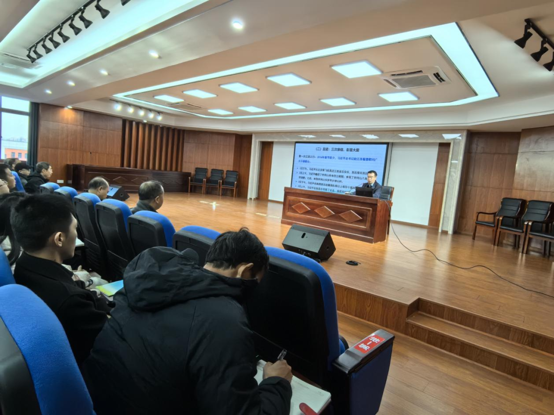 为深入学习贯彻习近平总书记考察江西重要讲话精神,12月1日下午,安义中学组织全体党员教师在会议室召开了主题为‘奋力谱写中国式现代化江西篇章—学习贯彻习近平总书记考察江西重要讲话精神‘的党课学习会。本次党课由学校党总支书记骆巧弟同志作专题宣讲。