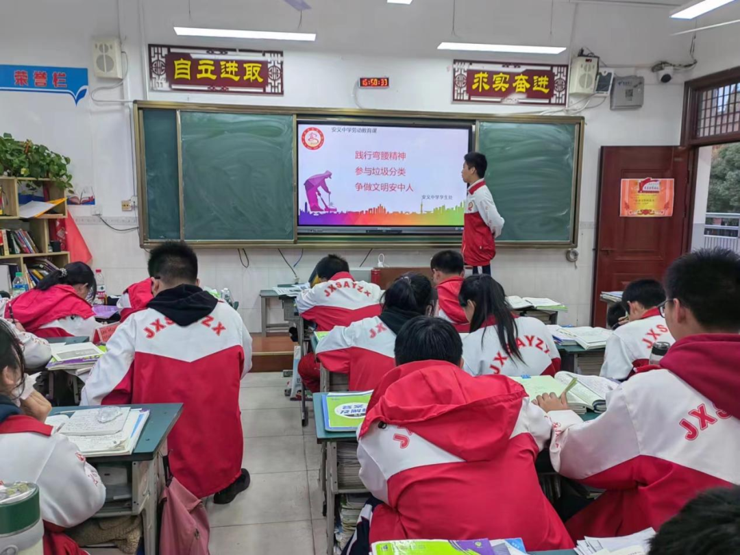 周五(2023年12月8日),江西省安义中学举行了一场以《践行弯腰精神,参与垃圾分类,争创国家卫生县》为主题的班会活动。本次活动旨在提高同学们的环保意识,加强校园环境卫生管理,共创整洁校园,争创国家卫生县。