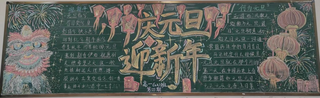 日月开新元,万象始更新。为进一步推进我校文艺活动蓬勃发展,丰富校园文化生活,活跃班级文化氛围,安义中学政教处联合高一、高二年级组于1月3日晚,开展了以‘迎新年 庆元旦‘为主题的黑板报展评活动。