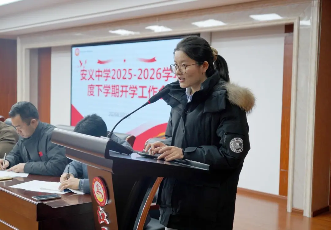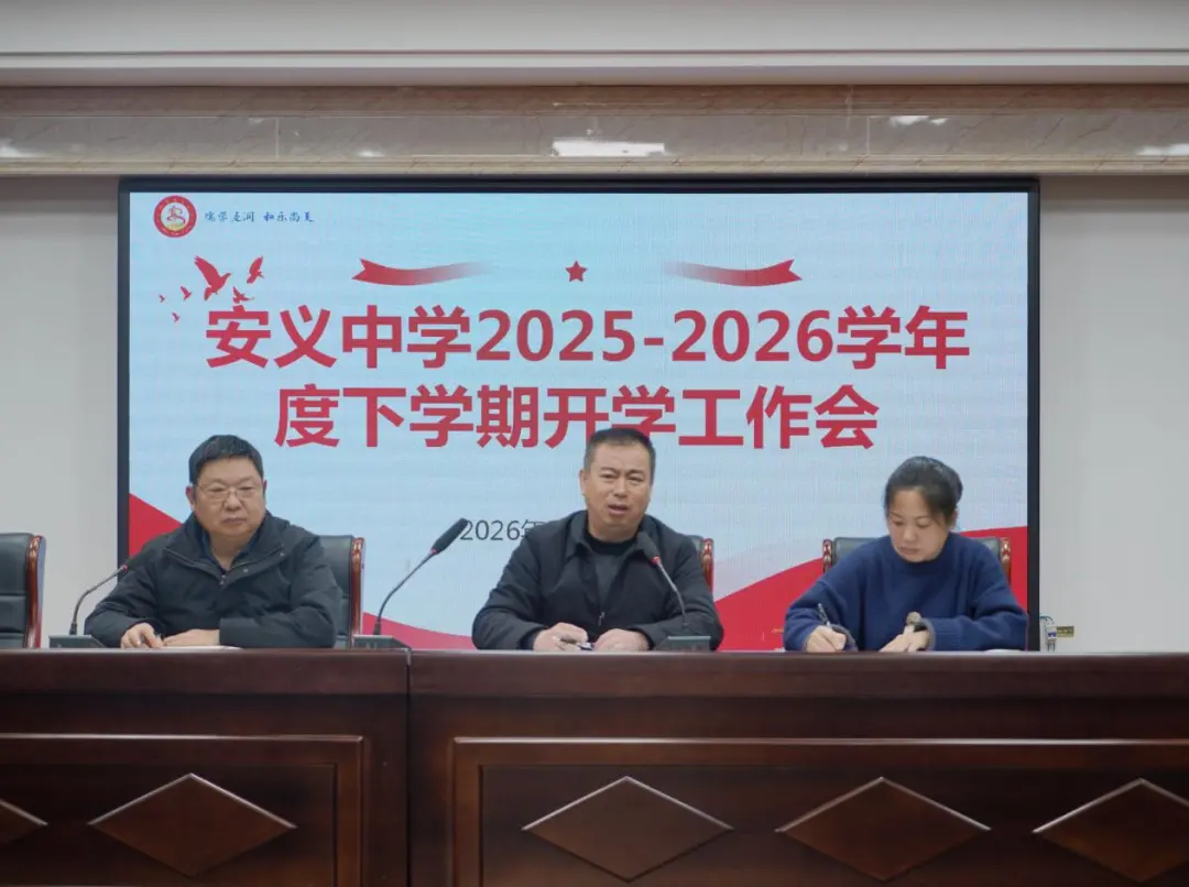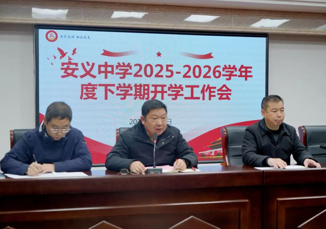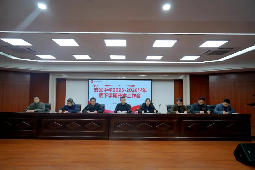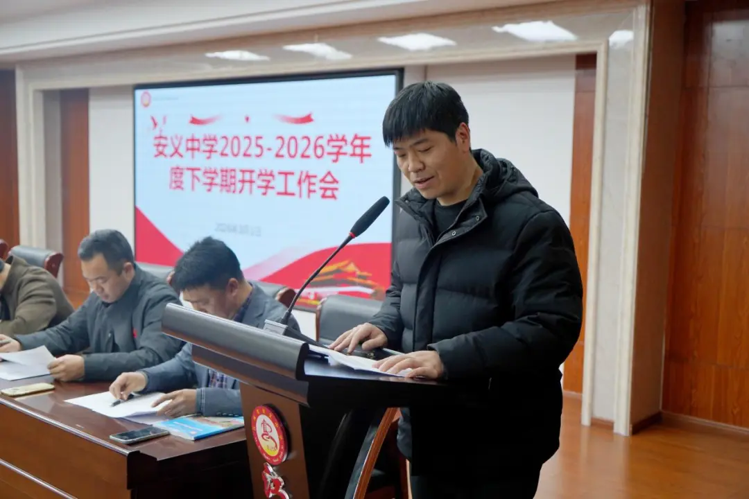 东风送暖,春启安义;奋楫争先,笃行致远。为统筹部署新学期重点工作,锚定高质量发展航向,凝聚全校育人合力,2026年3月1日,安义中学 2025-2026 学年下学期开学工作会在五楼会议室顺利召开。全体教职员工齐聚一堂,以初心赴使命,以实干启新程。会议由杜建港副书记主持。